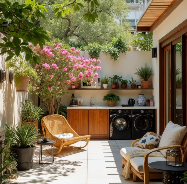 有的小院比较大,可以在这里做上休闲区,不管是休息、种花、休闲都很不错,提升幸福感。