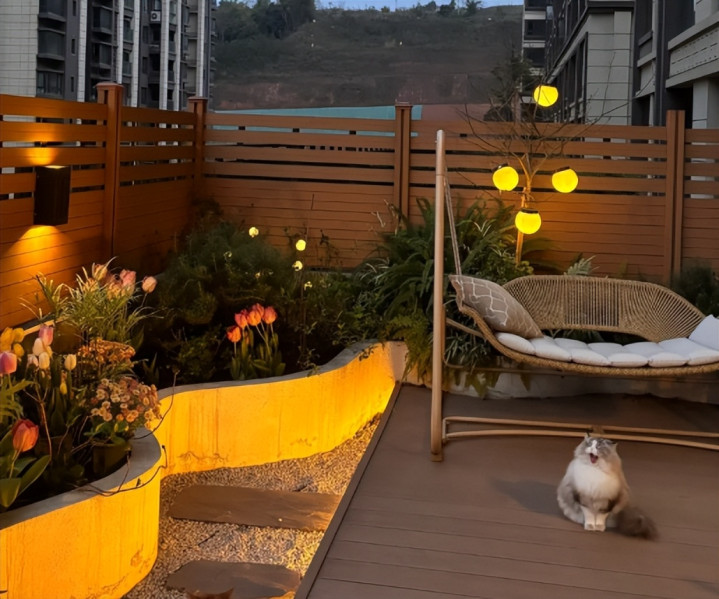 拥有了这个独立的小院子之后,你白天可以躺在这里晒阳台,晚上去欣赏夜景。